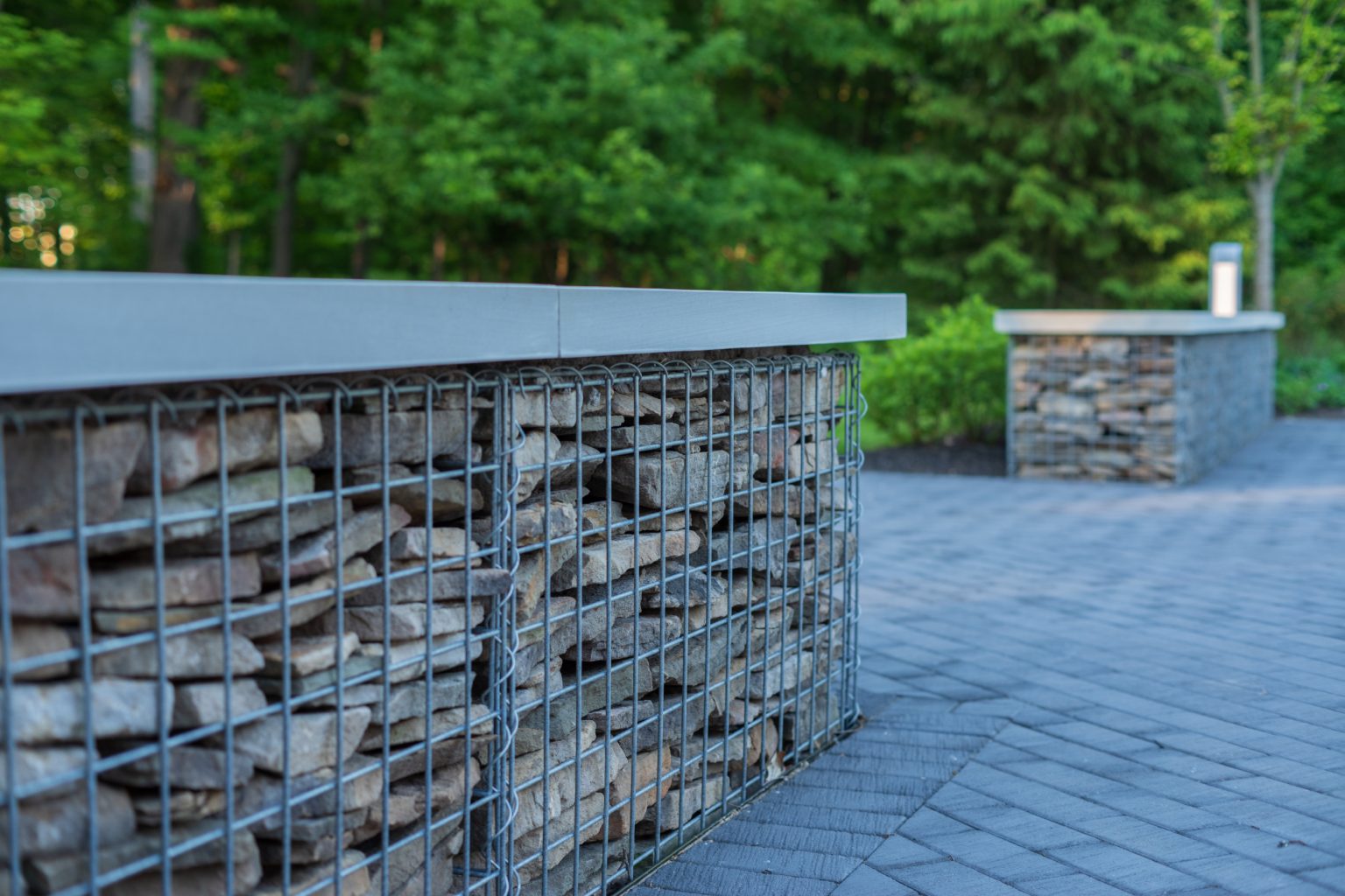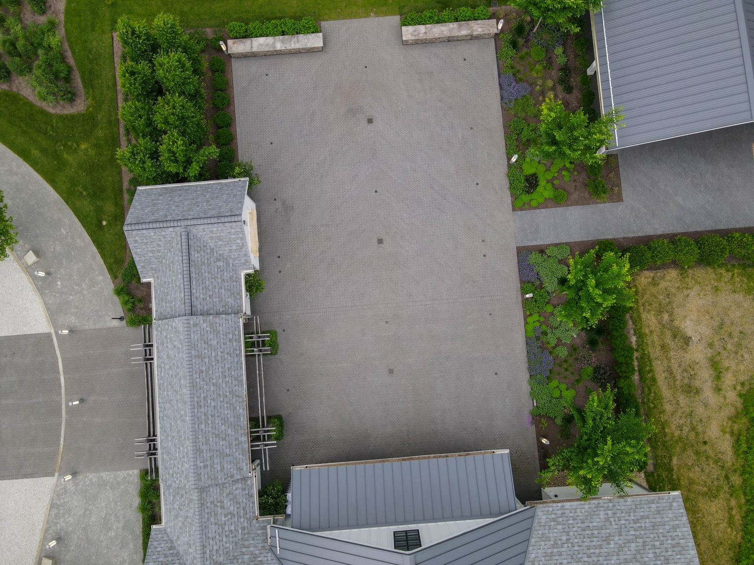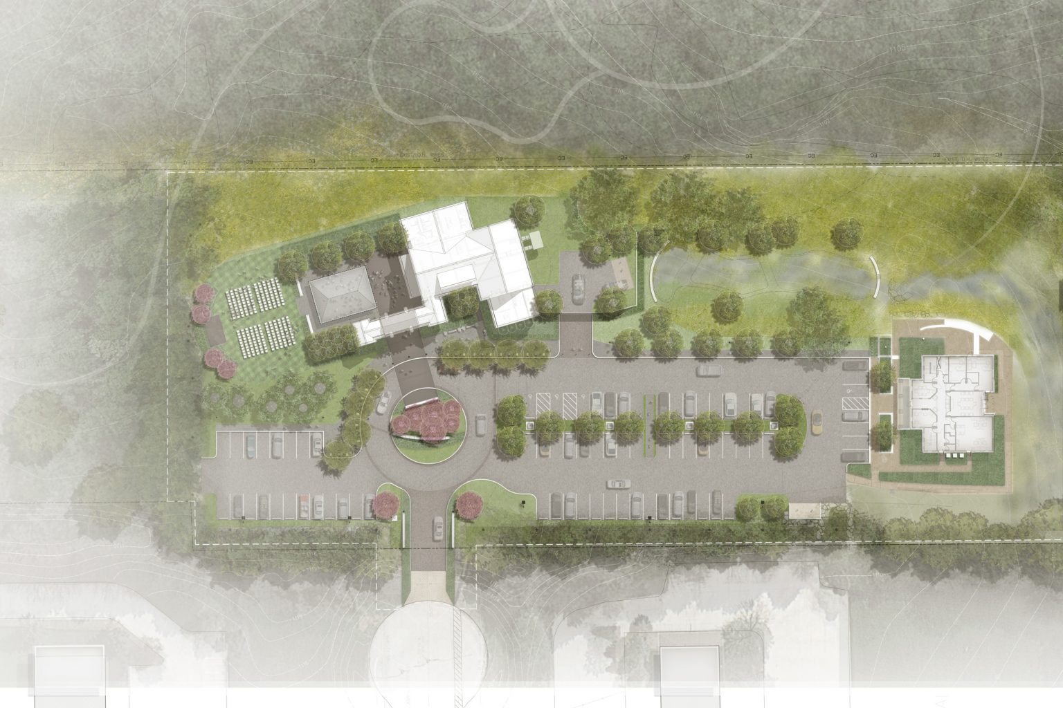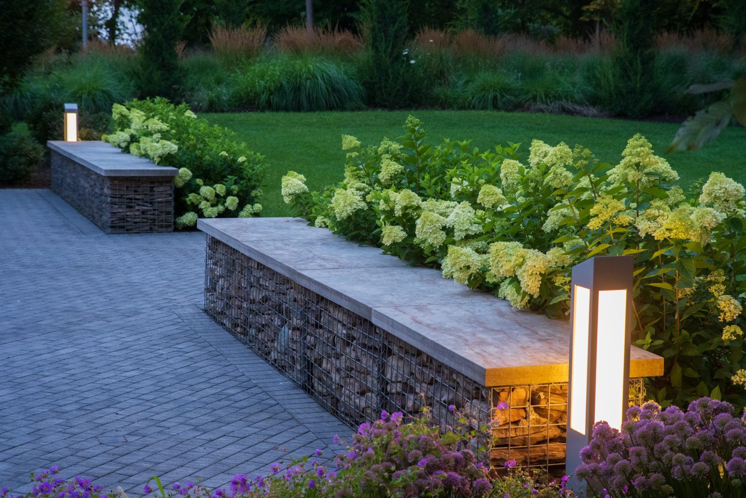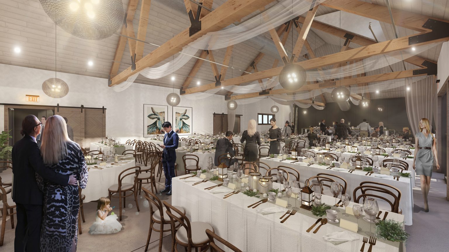Highfields Event Center was created to share the beauty of this second- generation farmland with the community in a much-needed venue beautiful enough to match the surrounding grounds. Working closely with the DS Architects Design Team, KGK developed a comprehensive site plan connecting indoors and out. Guests are welcomed to the property by a circular sign bed featuring a gabion wall with illuminated Corten steel sign and lush plantings. Circulating around the Entry Auto Court, visitors pass by the native meadow bioswale before reaching the center’s entry terrace. Simple tree and foundation plantings were selected to allow Highfield’s architectural details to be the focus of attention. Bollard light fixtures, sandstone curbing, and the rough-sawn cedar pergola blend new and old to create a truly unique venue entrance.