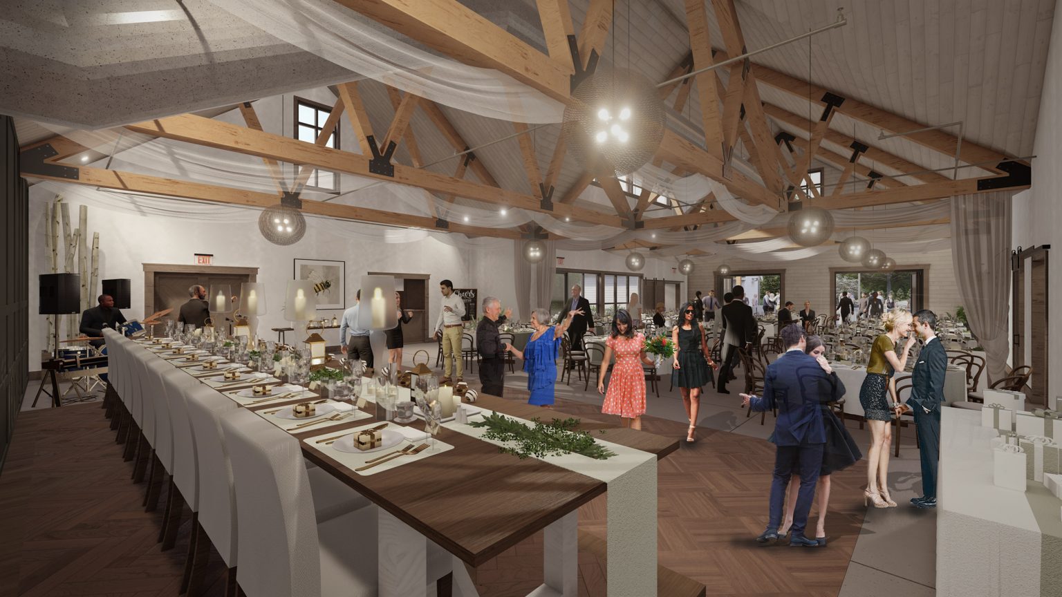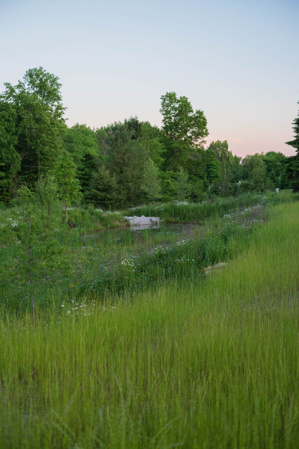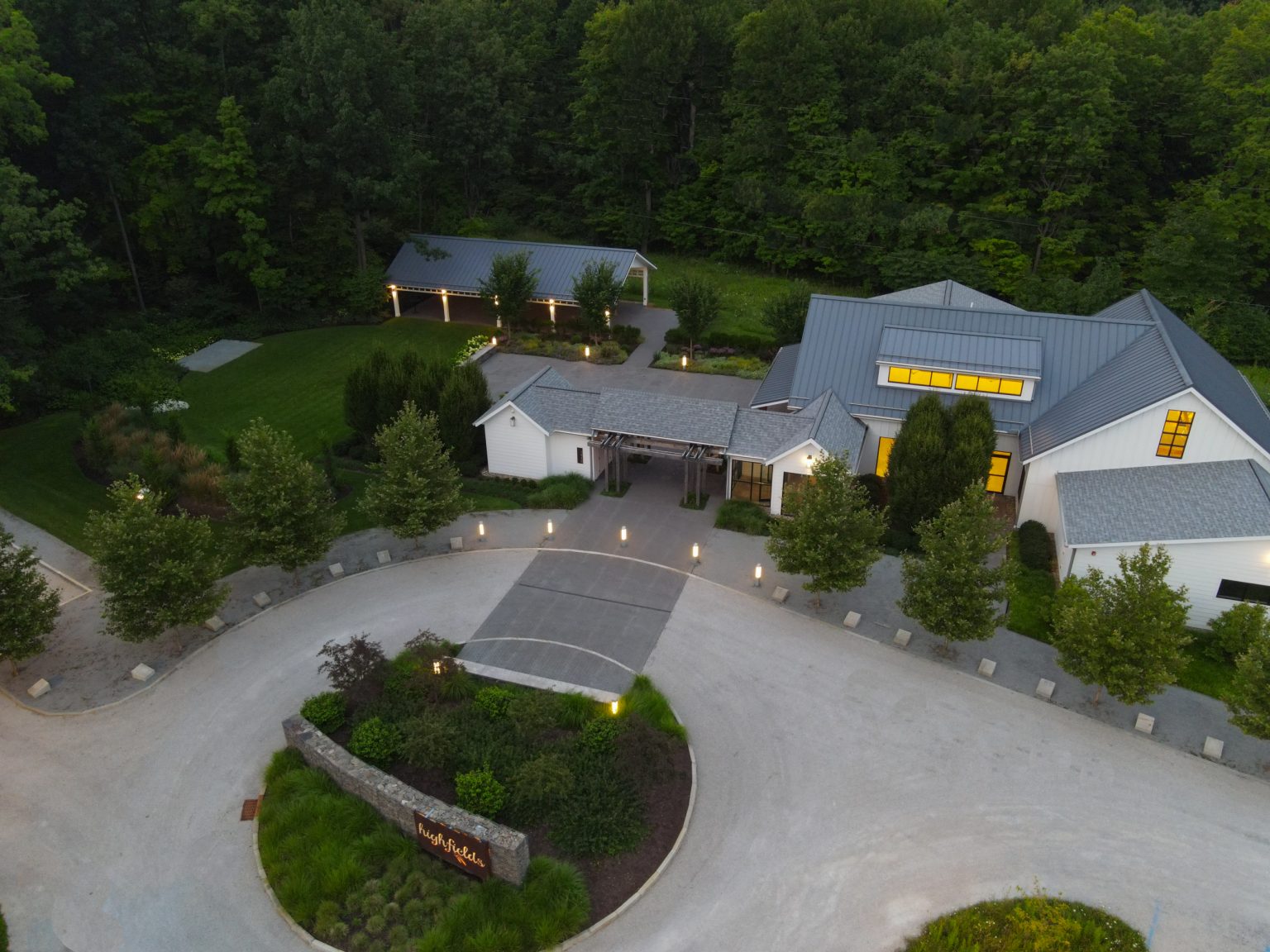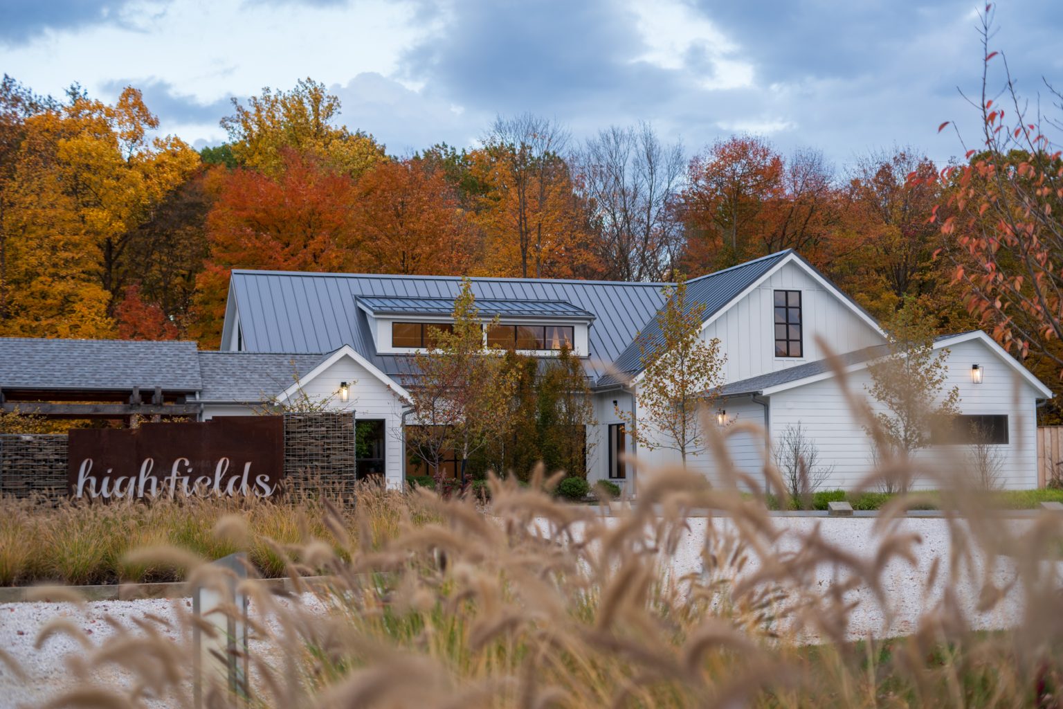 Passing through the vine wrapped pergola, guests will arrive at the Terrace, an expansive chevron paver patio connecting the main venue space to the outdoor ceremony site. The Terrace is also home to Highfield’s perennial garden, an ever-evolving naturalistic planting feature that was created to provide an ongoing show of color and textural interest throughout the wedding season. Surrounded by a wildflower meadow and mature woodland beyond, Highfield’s is a hidden gem in the Hudson community.
